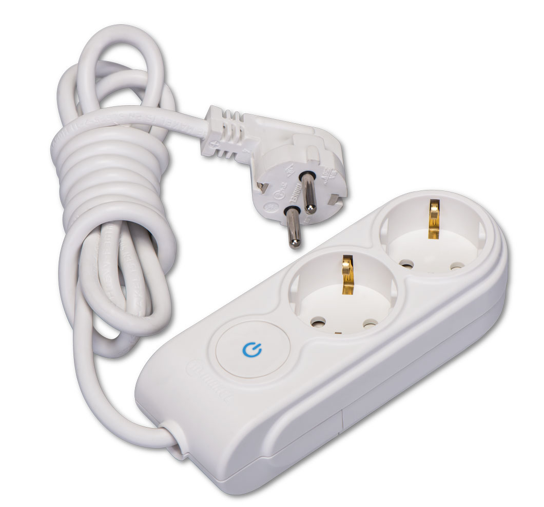 2 Gang Multiple Earthed Socket with Switch & Cable 15m.